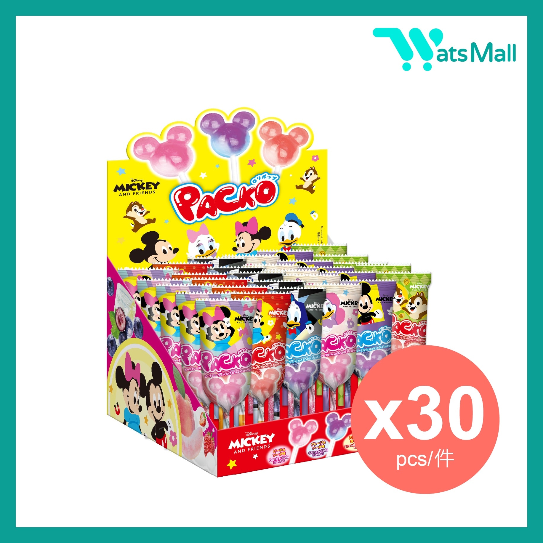 迪士尼系列扭扭米奇棒棒糖 (香桃蘇打味, 提子蘇打味, 草莓乳酸味) 7克 (30件) (到期日:2026年7月10日)